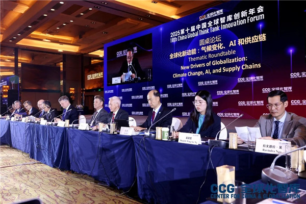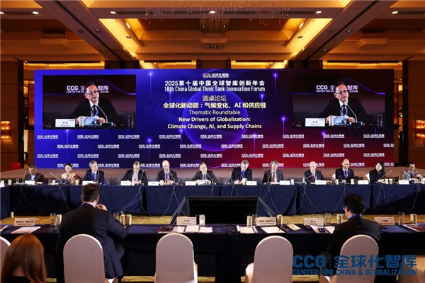 The next thematic roundtable, themed “New Drivers of Globalization: Climate Change, AI, and Supply Chains,” was moderated by Zhang Wei, Deputy Secretary-General, Senior Research Fellow, and Director of Partnerships Department at CCG.