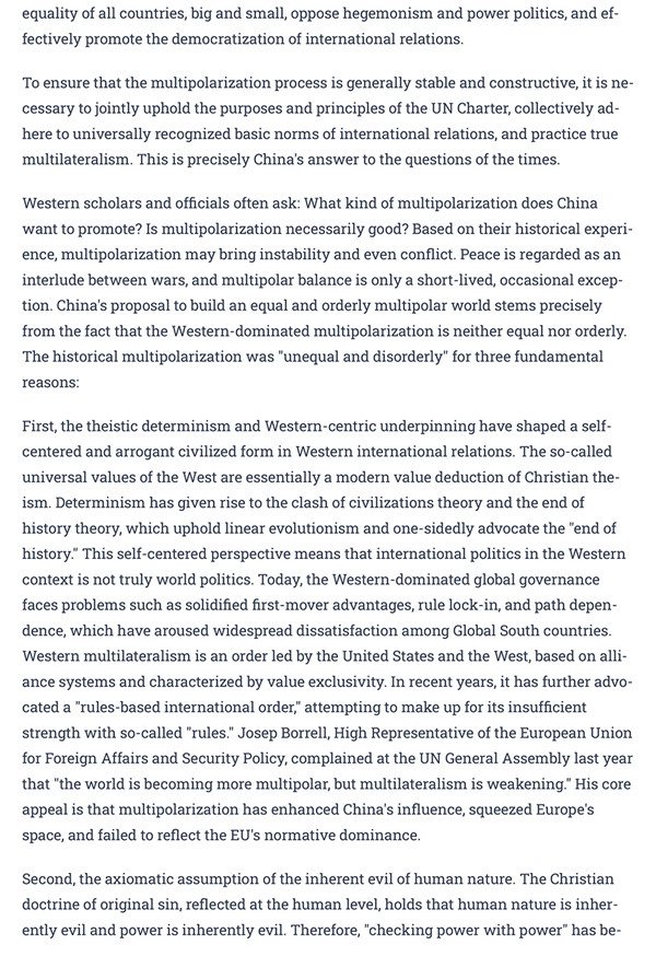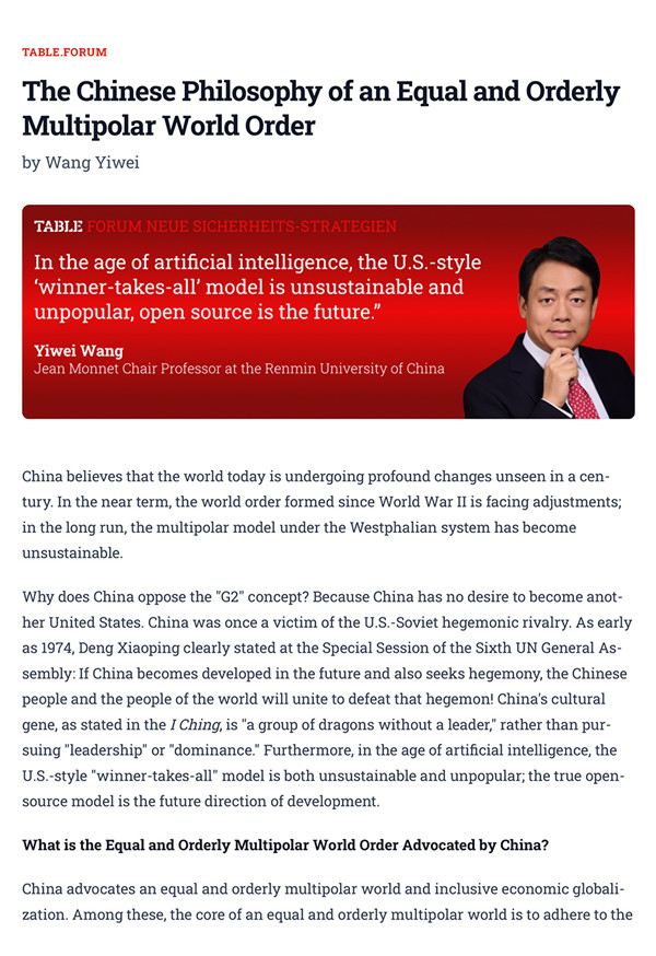 Wang Yiwei: The Chinese Philosophy of an Equal and Orderly Multipolar World Order